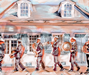 Rhythm of the Second Line captures the heartbeat of New Orleans culture—where music, movement, and community come together in joyful procession. This expressive artwork features a traditional second line band marching proudly through the city, instruments in hand, set against the backdrop of classic New Orleans architecture.